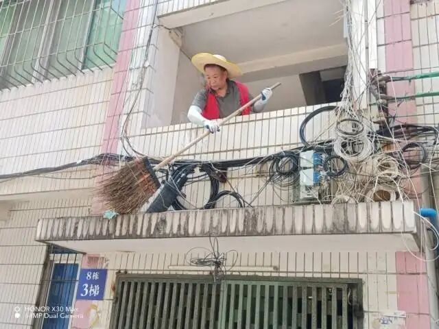 甘丽贞干活特别认真,总能发现别人容易忽略的卫生死角。楼顶堆放的垃圾、巷子里的积水、不起眼的角落,她一眼就能看出来。有一次,居民反映楼顶有臭味,她上去一看,发现是多年堆积的粪尿肥料,已经板结成块。她二话不说,拿起铁锹就开始清理,汗水混着臭味,熏得人睁不开眼,可她硬是坚持干完,直到把楼顶打扫得干干净净。