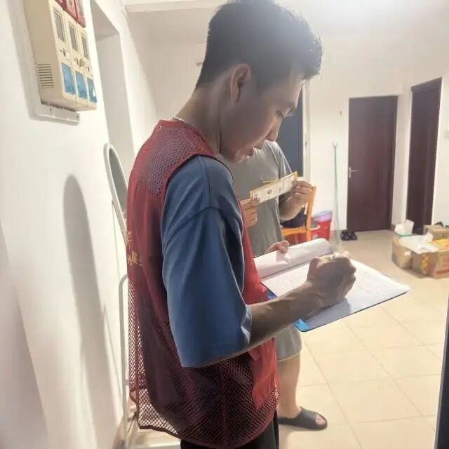 每天任务结束,当队员们拖着疲惫离开,廖振辉总独自留下。他借着黄昏最后一点微光,逐项清点工具,仔细检查是否留下死角。纸上密密麻麻记着:某栋楼积水清理;某楼入户数据,宣传海报是否需补充……这些带着汗味的文字,最终都化作第二天的行动方案。