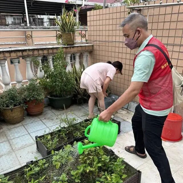 腿脚疼也不下火线。50多岁的张仪患有多年风湿骨痛,每逢阴雨天关节便钻心地疼。接到“两热”防控任务当天,正值台风后高温天气,他二话不说套上红马甲就冲进了责任片区。老旧小区没有电梯,他每天爬楼近百层,逐户排查登记、清理花瓶积水、发放灭蚊物资。伙伴们劝他歇一歇,他却摆摆手:“我熟悉这小区居民的情况,换人耽误时间。”第二天伙伴们还看到他腿脚上贴着膏药:“老毛病了,贴两片‘铠甲’又能战斗。”